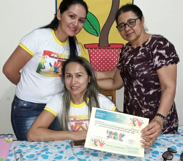 A coordenadora de ensino infantil Fátima Alves e sua equipe pedagógica estão preparando os certificados para entregar aos professores que participaram das formações continuadas do ensino infantil.
