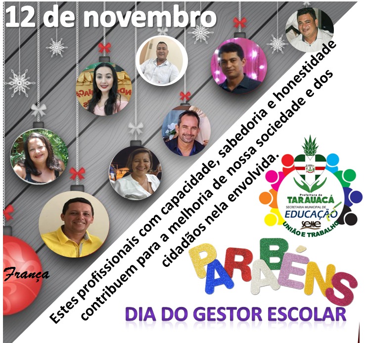 "A Prefeitura de Tarauacá, através da Secretaria Municipal de Educação de Tarauacá, parabeniza todos os gestores das unidades de ensino do município de Tarauacá, neste dia 12 de novembro, dia do gestor escolar. Que Deus abençoe a todos com muita sabedoria para que desenvolvam suas atividades voltadas para o bem estar de cada educando". Disse Secretário de Educação Orlando Bezerra